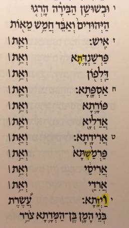 Bij het opsommen van de namen van de 10 zonen van Haman heeft de Joodse traditie altijd vereist dat drie letters in naam van Hamans zonen in een kleiner lettertype worden geschreven - een Taf, een Shien en een Zayin, die het numerieke equivalent van gematria heeft van 707 ( shien = 300, taf = 400, zayin = 7). Het was niet bekend waarom we deze letters millennium lang in een kleiner lettertype moesten schrijven, maar nu weten we het.