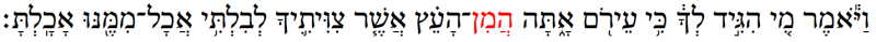 In deze zin wordt “van de boom” geschreven als “HaMiN HaETz”. HaETz is “de boom” en HaMiN is “van”. Maar de reden dat er “Ha” gekoppeld is aan “Min” heeft taalkundig geen enkele reden. Dit kunnen we ook zien in het vers dat erna komt namelijk:
