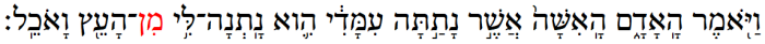 Genesis 3:12 Toen zeide de mens: De vrouw, die Gij aan mijn zijde gesteld hebt, die heeft mij van de boom gegeven en toen heb ik gegeten.